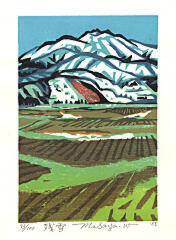 山の池 7.3×12.5 額サイズ24.2×30.3㎝ 白馬三山 7.3×12 額サイズ24.2×30.3㎝